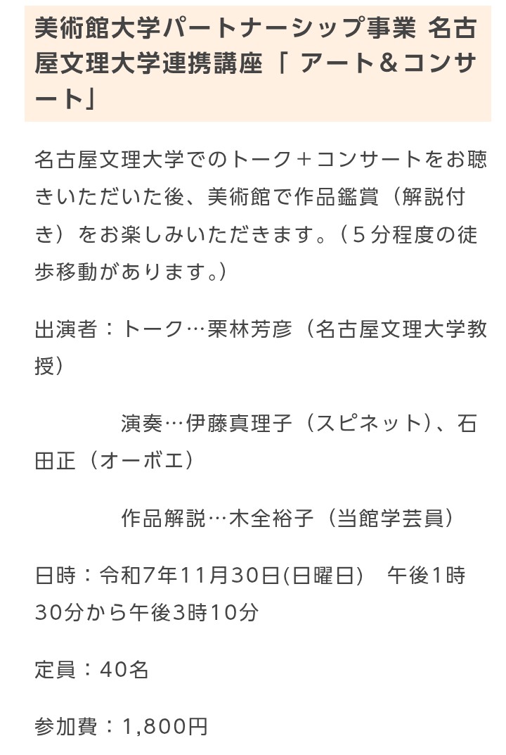 美術館大学パートナーシップ事業 名古屋文理大学連携講座 「アート&コンサート」
