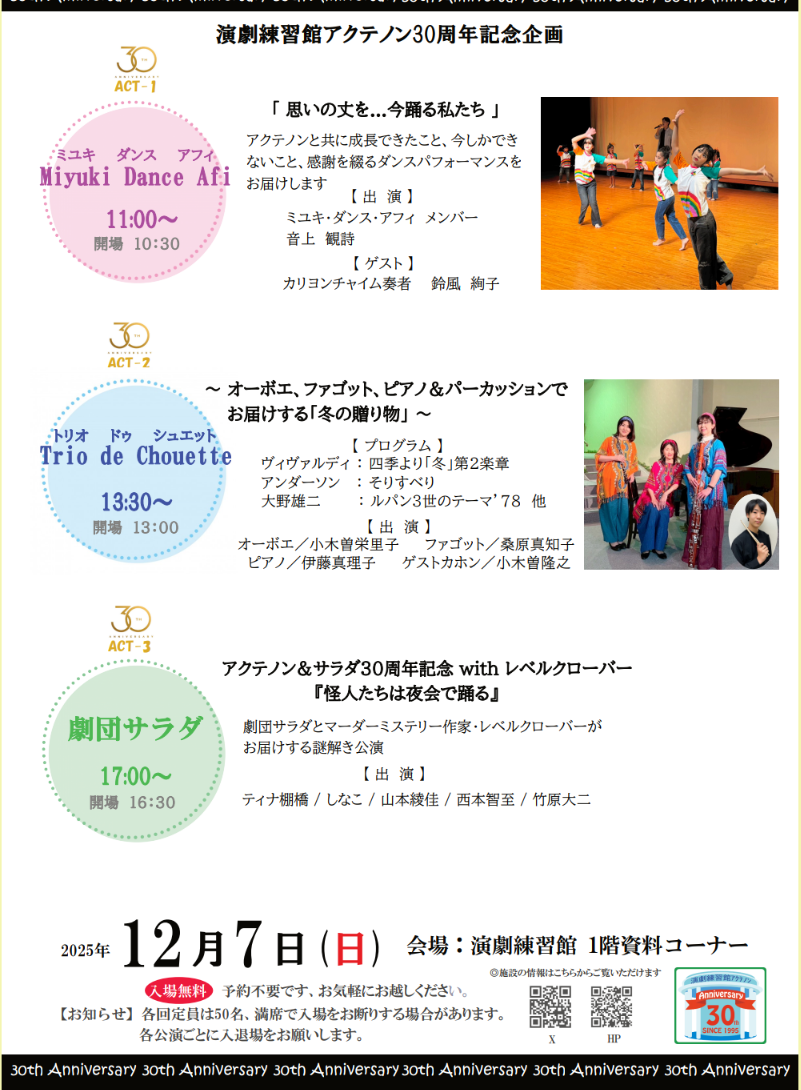 演劇練習館アクテノン 30周年記念企画 コンサート